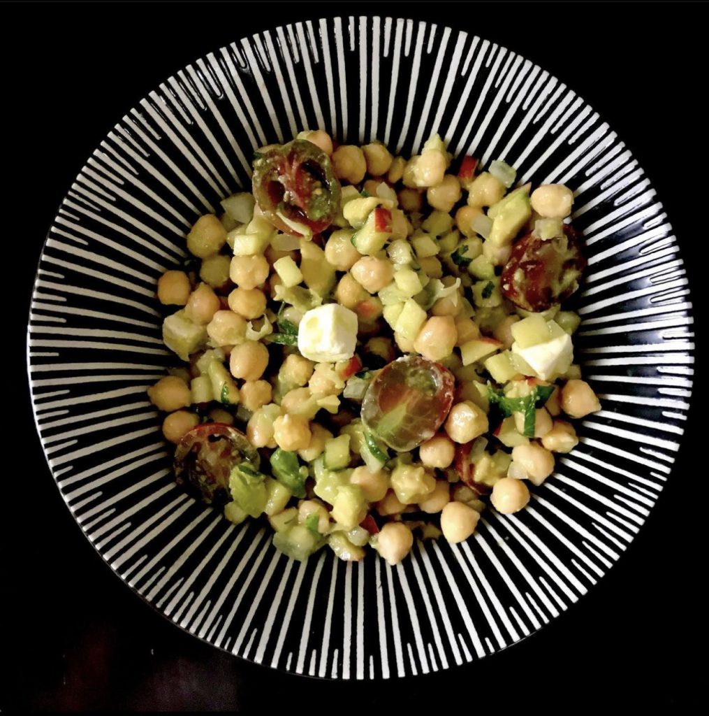 ENSALADA DE GARBANZOS CON QUESO FETA Y AGUACATE